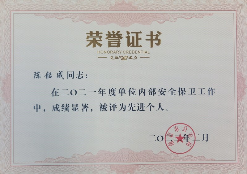 近日,江蘇省公安廳和南京市公安局對在2021年度單位內部治安保衛工作中做出顯著成績的保衛組織和人員進行表彰,江蘇省公安廳給予我校殷云林同志記個人二等功一次。南京市公安局給予謝秉宸同志記個人三等功一次,評選陳韶成和李含菁同志為先進個人。