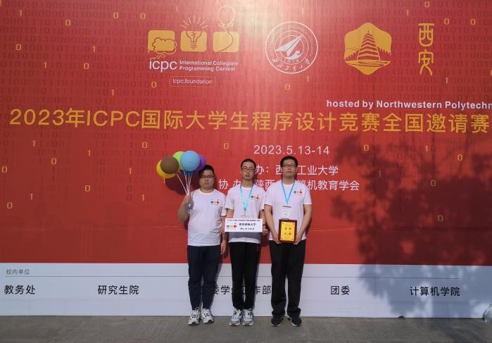 5月14日,2023年國際大學生程序設計競賽全國邀請賽(陜西)在西北工業大學舉行,我校計算機學院、軟件學院、網絡空間安全學院2019級本科生張帥青、2020級本科生金益凡和通信與信息工程學院2020級本科生蔡振川組成的代表隊榮獲金獎。在此次邀請賽上,我校代表隊還獲得銀獎和銅獎各1項。