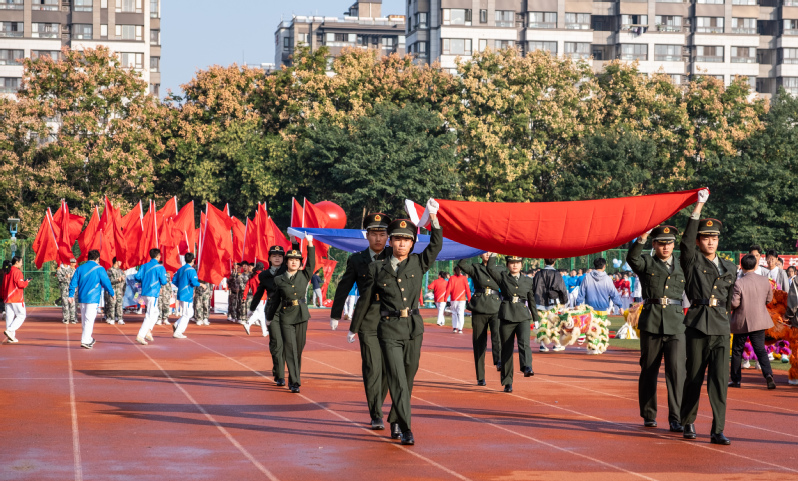 謝平副校長致開幕辭。她指出,體育是綜合國力的體現,是國家形象的展示,也是發展進步的縮影。黨的二十大報告強調,要“培養德智體美勞全面發展的社會主義建設者和接班人”。“五育并舉”是落實立德樹人根本任務的重要舉措,作為“五育”的重要組成部分,體育具有養德、益智、勤勞、尚美的育人作用,學生在體育鍛煉中能享受樂趣、增強體質、健全人格、錘煉意志。她強調,剛剛結束的杭州亞運會給全世界人民留下了深刻印象,我校要在亞運會的余溫中繼續倡導“陽光體育、健康南郵”的理念。長期以來,我校高度重視大學生體育運動和健康教育,不斷深化校園體育文化建設,加強體育基礎設施建設,開展群眾性體育活動,提升普通生和高水平運動隊伍建設層次,學生體質健康水平一直走在全省前列,競技體育碩果累累。希望師生們積極參加體育鍛煉,弘揚中華體育精神,以更加充沛的精力、強健的體魄和飽滿的熱情,投入到工作和學習中去,為把學校建成電子信息領域特色鮮明的高水平大學而努力奮斗。