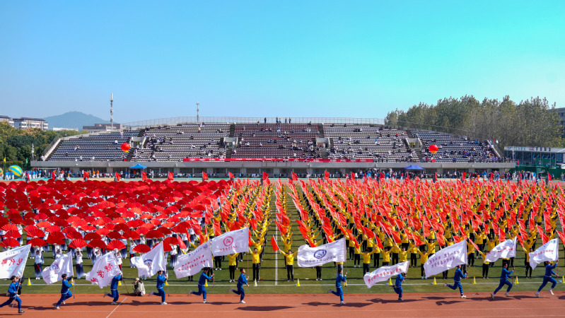 入場儀式上,伴著激昂的樂聲,28支代表隊的師生方陣依次入場。鏗鏘有力的步伐、統一整潔的著裝,每一個方陣在引導員、旗手和領隊老師的帶領下,高喊著具有院系特色的嘹亮口號,整齊劃一地走過看臺,充分展現出南郵學子朝氣蓬勃、拼搏奮進的風采和精神。齊魯烽火,戰郵發祥,崢嶸八秩,初心不忘,我校始終堅持信息報國,勇立科技發展潮頭,經緯世界通信,逐夢星辰大海。方陣表演中,師生們英姿勃發,熱情洋溢,他們用歌聲、用舞蹈、用口號、用造型,充分表達對黨的熱愛與忠誠,展示在新征程上奮發拼搏的勇氣和自信。