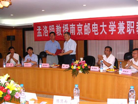 2006年6月25日下午,孟洛明教授受聘南京郵電大學兼職教授儀式在驛園賓館五樓會議室舉行。張順頤副校長主持儀式