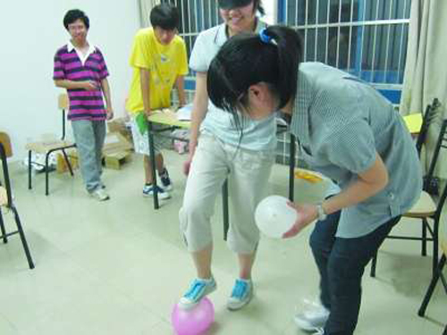 兩個男生是舍友,一個演“瘸子”,一個演“瞎子”,兩人須齊心協力踩爆前方的氣球。不料,“瘸子”抓起“瞎子”的手使勁往前拽,任務完成了,“瞎子”也光榮負傷了。進了大學,舍友成了最親密的人,同住一個屋檐下容易發生矛盾,昨天,南京郵電大學第二屆“宿舍心理文化節”上,全校多個宿舍進行了這樣的游戲考驗,一個個看似輕松活潑的小游戲,卻讓大學生們“暴露”了與舍友相處中的問題。