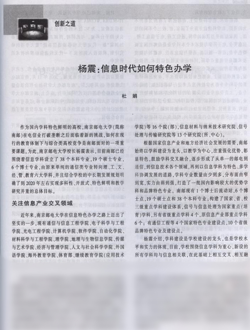 【電信科學】楊震:信息時代如何特色辦學