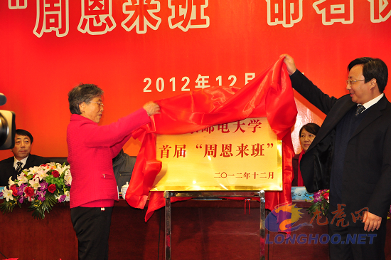 12月22日,南京郵電大學舉行首屆“周恩來班”命名儀式。該校人文與社會科學學院2011級公共事業(yè)管理班被命名為“周恩來班”。周恩來鄧穎超秘書、全國政協(xié)原副秘書長、周恩來思想生平研究會顧問、周恩來鄧穎超研究中心顧問趙煒和南京郵電大學黨委書記劉陳共同為該校“周恩來班”揭牌。