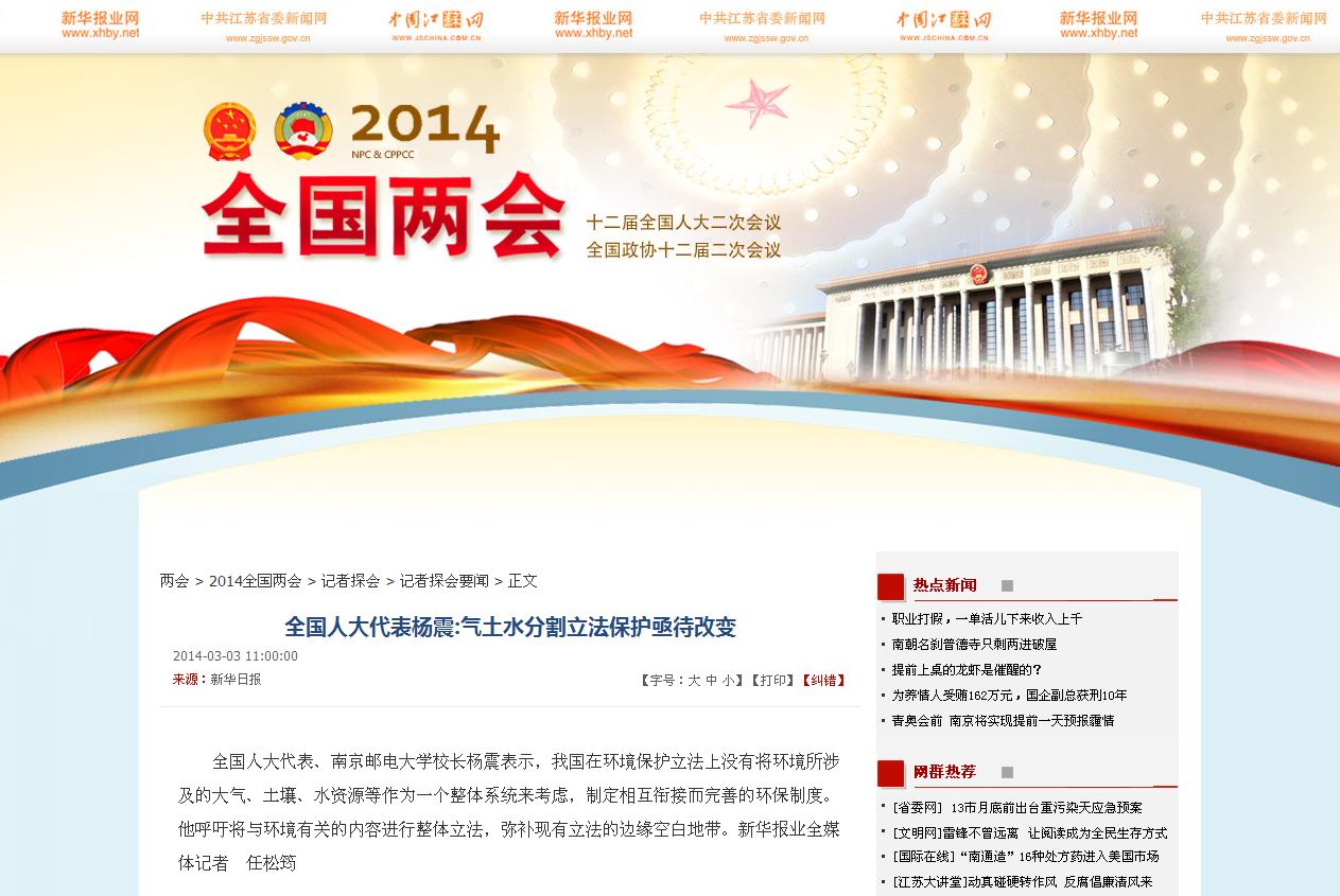 【新華日報】全國人大代表楊震:氣土水分割立法保護亟待改變