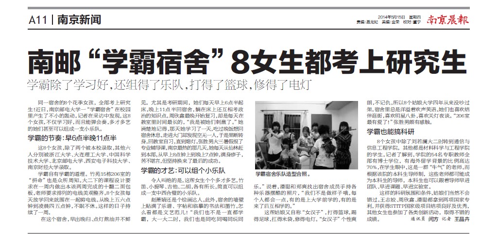 【南京晨報】南郵“學霸宿舍”8女生都考上研究生