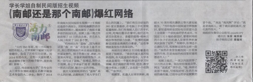 【揚子晚報】《南郵還是那個南郵》爆紅網絡