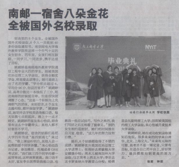 【揚子晚報】南郵一宿舍八朵金花全被國外名校錄取