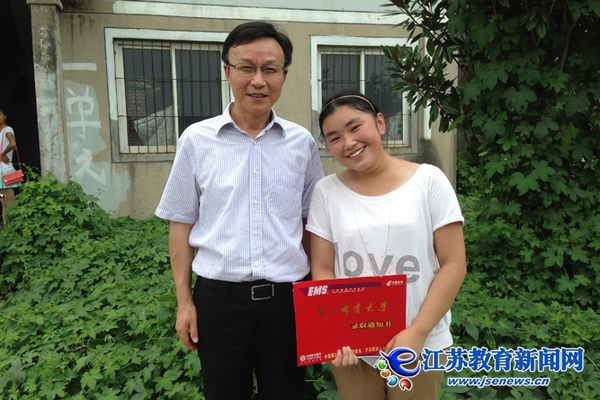 南郵大黨委副書記朱永平教授為沭陽縣中學司慧靈頒發錄取通知書