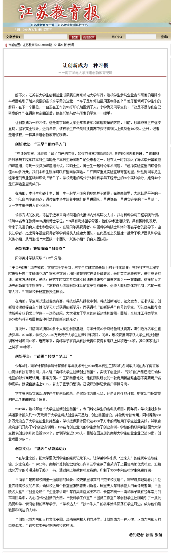 【江蘇教育報】A1版:讓創新成為一種習慣