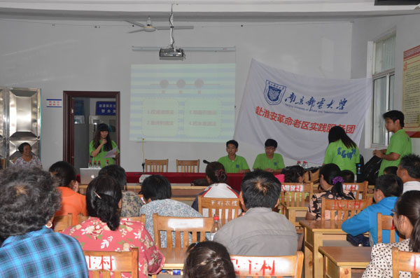 實踐團的同學(xué)們還為當?shù)卮迕窈椭行W(xué)生作了“暑期安全知識講座”和“我的成長故事報告會”。同學(xué)們通過生動的圖片和精心制作的PPT,就農(nóng)村留守兒童日常生活中可能遇到的危險,如溺水、雷擊、觸電、交通事故、毒蛇叮咬等意外,講解了應(yīng)采取的急救和自救措施,并對孩子們普及了防拐賣、防高空墜落、防溺水、防火、防電等安全知識。在“我的成長故事報告會”上,同學(xué)們和當?shù)刂行W(xué)生分享自己的學(xué)習(xí)和成長經(jīng)歷,引導(dǎo)他們樹立遠大理想,刻苦學(xué)習(xí),練就強健體魄,實現(xiàn)全面發(fā)展,早日成為建設(shè)祖國的棟梁之才。
