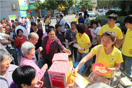 志愿者為老年人送健康贈飲