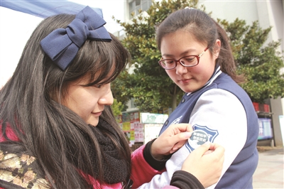 南郵的學(xué)生現(xiàn)場戴徽標(biāo)
