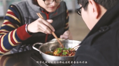 講述完學校的美食,鏡頭切換至校外的“南郵廣場”,蒙自米線店的老鵝湯秀才米線、最高雞密店的雞排和外酥里嫩的手扒雞,均通過鏡頭將廚師的烹制過程以及客人們享受食物的過程完美的展現在了觀眾的眼中。“不少學校都有關于自己美食的紀錄片,我們南郵有這么多的美食,為什么不做一個呢?”《舌尖上的南郵》導演楊曉航同學說。正是懷著這樣的初衷和熱情,他和他的團隊——南郵傳媒與藝術學院光影空間工作室經過20多天的努力,終于創作出了南郵第一部美食紀錄片。