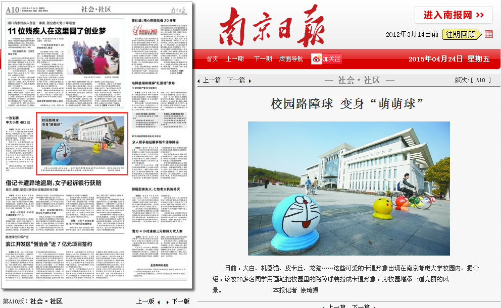 【南京日報】校園路障球 變身“萌萌球”