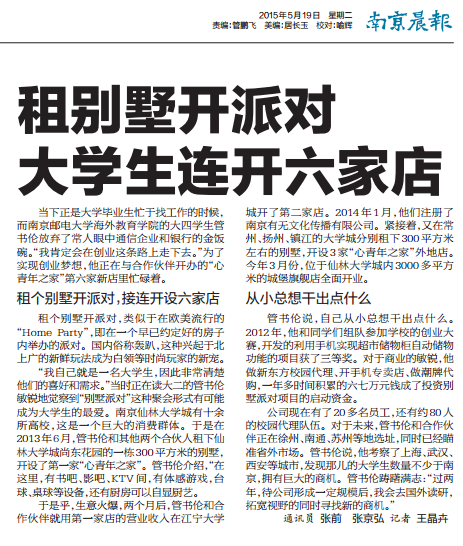 【南京晨報】租別墅開派對大學生連開六家店