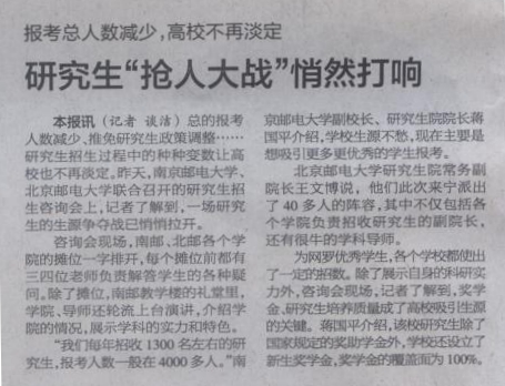【南京日報】研究生“搶人大戰(zhàn)”悄然打響