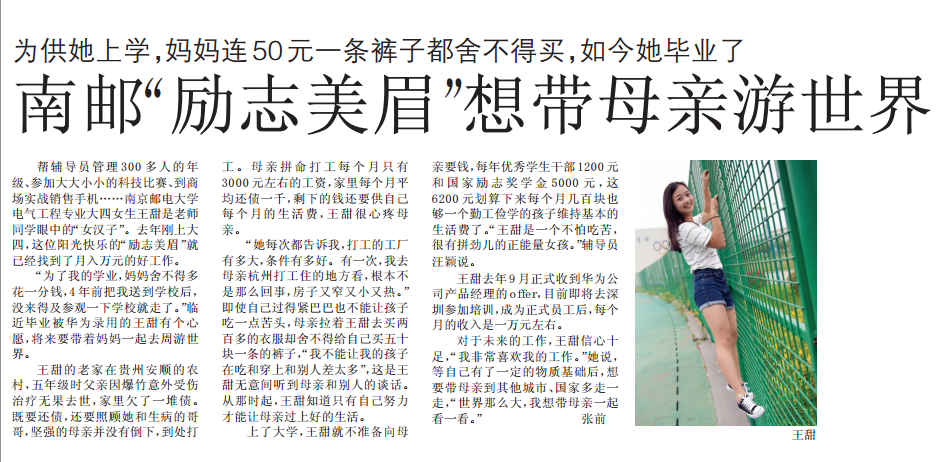 【揚子晚報】南郵“勵志美眉”想帶母親游世界