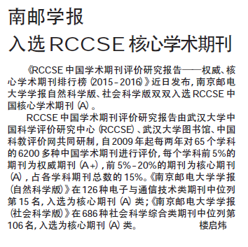 【新華日報】南郵學報入選RCCSE核心學術期刊