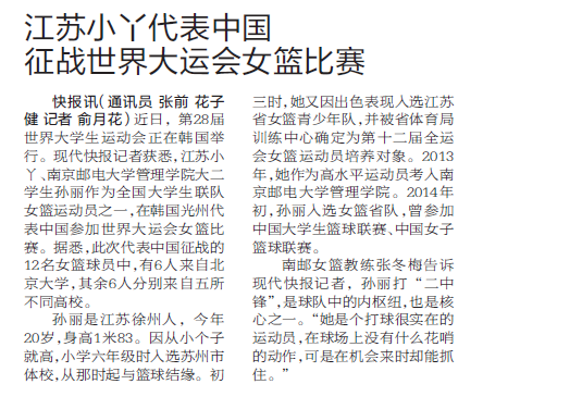 【現代快報】江蘇小丫代表中國征戰世界大運會女籃比賽