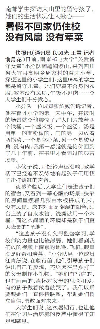 【現(xiàn)代快報(bào)】暑假不回家仍住校 沒(méi)有風(fēng)扇 沒(méi)有葷菜