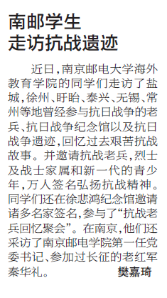 【揚子晚報】南郵學生走訪抗戰遺跡