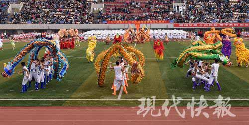 平盤(pán)波浪、孔雀開(kāi)屏、飛龍?jiān)谔?hellip;…10月30日上午,南京郵電大學(xué)在仙林校區(qū)體育場(chǎng)舉辦第46屆運(yùn)動(dòng)會(huì)。一支由140人組成的龍獅隊(duì)真神氣,在他們精彩的表演中拉開(kāi)了開(kāi)幕式的序幕。他們個(gè)個(gè)精神抖擻,能擺出很多高難度動(dòng)作。現(xiàn)代快報(bào)記者 俞月花/文 徐洋/攝