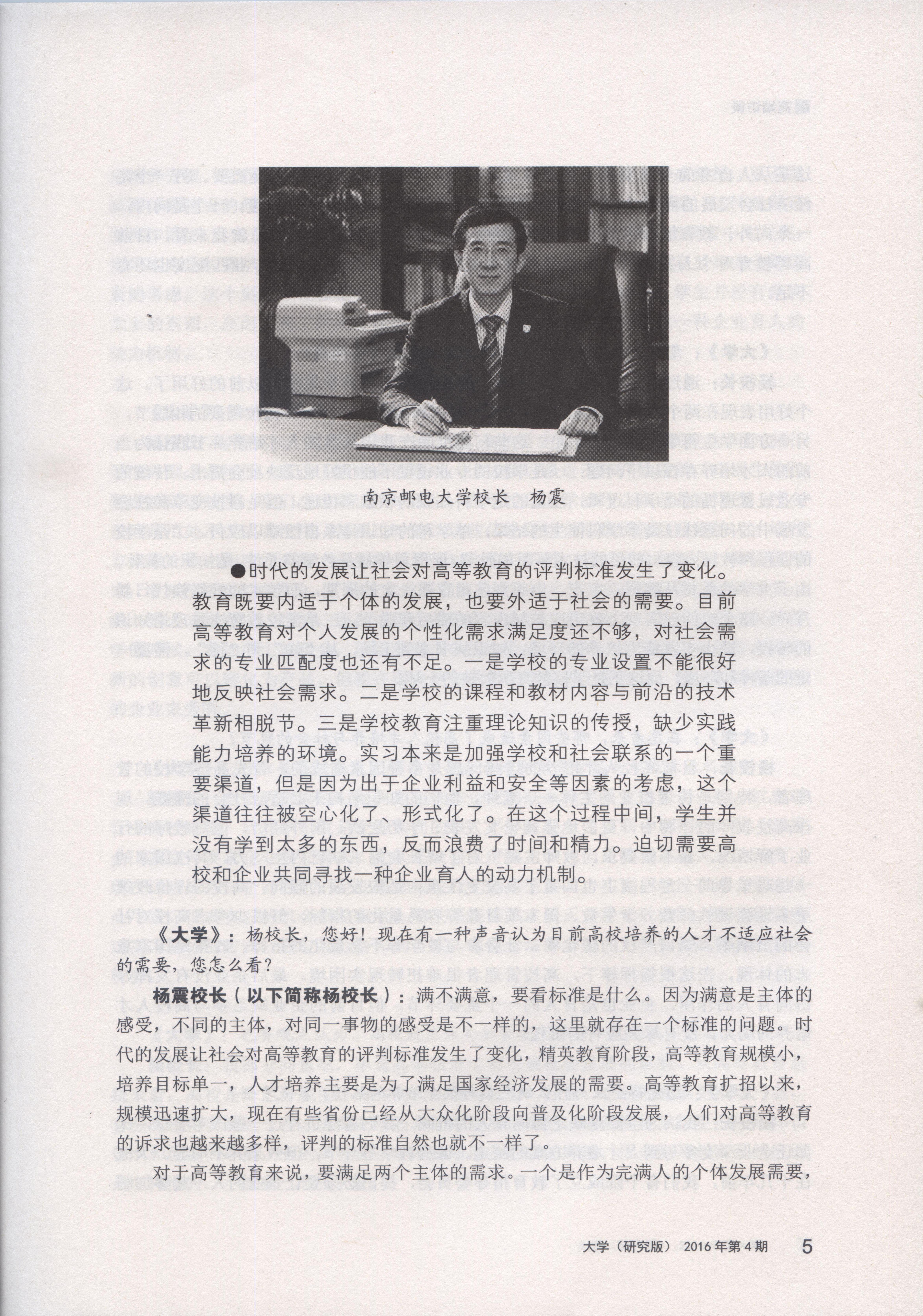 【大學(研究版)】創新育人機制,提高人才培養適切性——訪南京郵電大學校長楊震