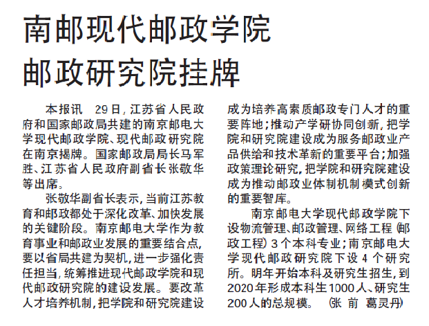 【新華日?qǐng)?bào)】南郵現(xiàn)代郵政學(xué)院 郵政研究院掛牌