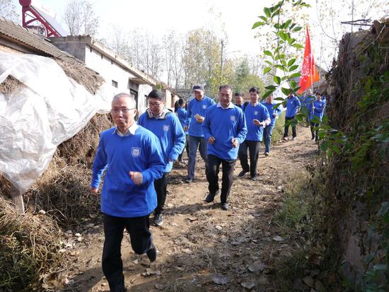 沿著山村里崎嶇的道路跑步向前、再向前。攝影:張前