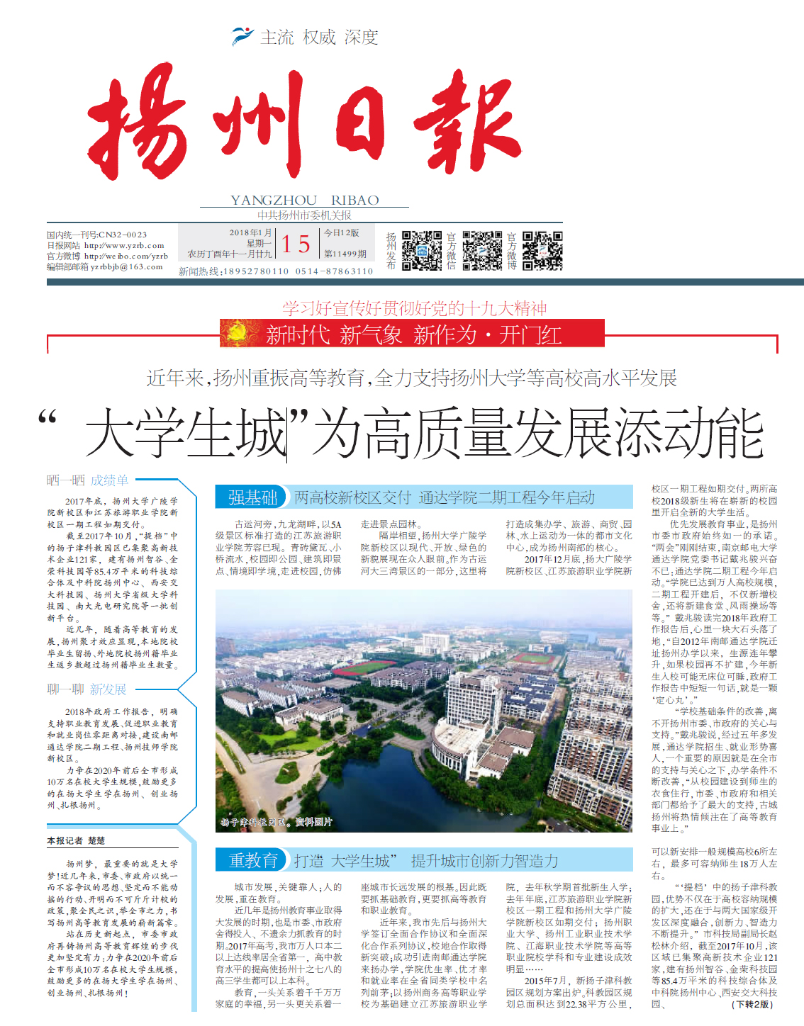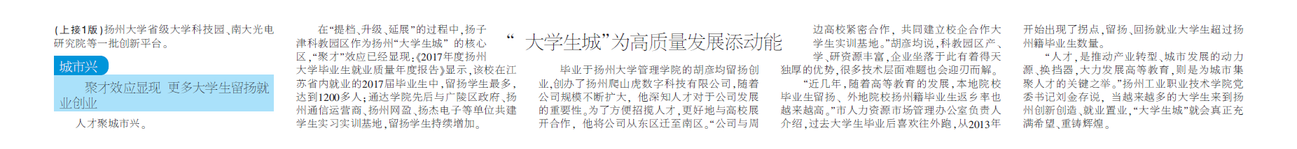 【揚州日報】頭版頭條:“大學生城”為高質量發展添動能