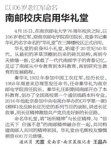 【南京晨報】南郵校慶啟用華禮堂