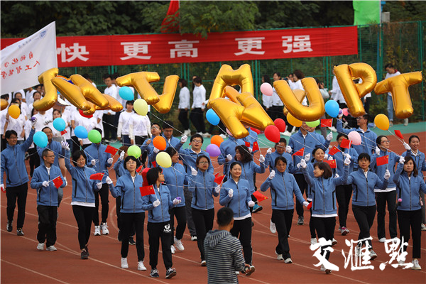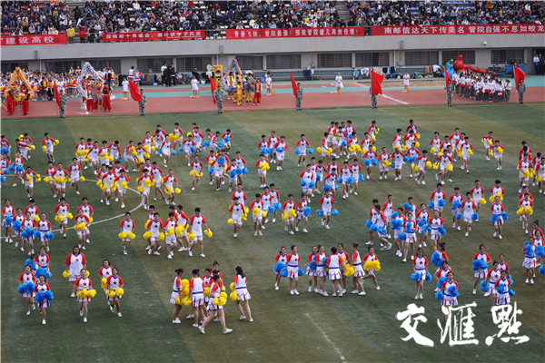 2018年10月19日,南京郵電大學舉辦該校第四十九屆田徑運動會,來自各個院系的大學生們整齊亮相,配以不同的服飾輪番展示神靈活現的舞龍舞獅、青春洋溢的啦啦操、整齊劃一的團體操、氣勢恢宏的武術等節目,場面壯觀吸引眼球。交匯點記者萬程鵬攝