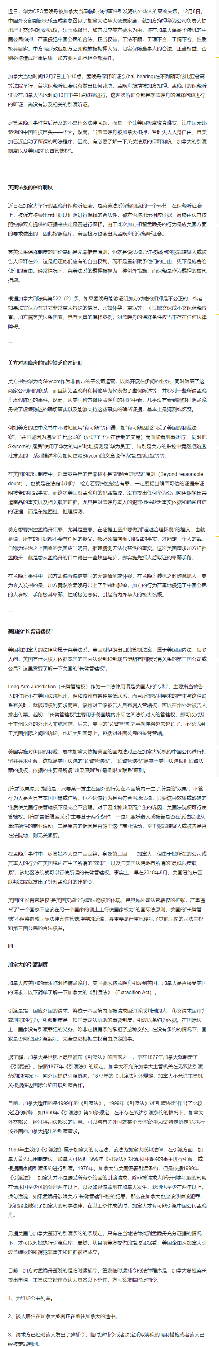 王春暉:孟晚舟事件背后的幾個法律問題,加拿大的保釋和引渡制度與美國的“長臂管轄權”
