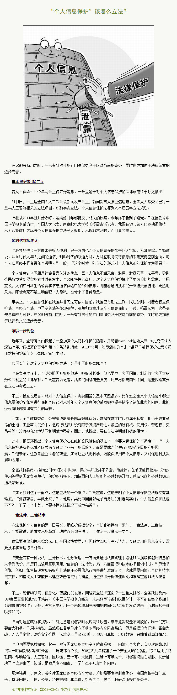 【中國科學(xué)報(bào)】個(gè)人信息保護(hù)”該怎么立法?