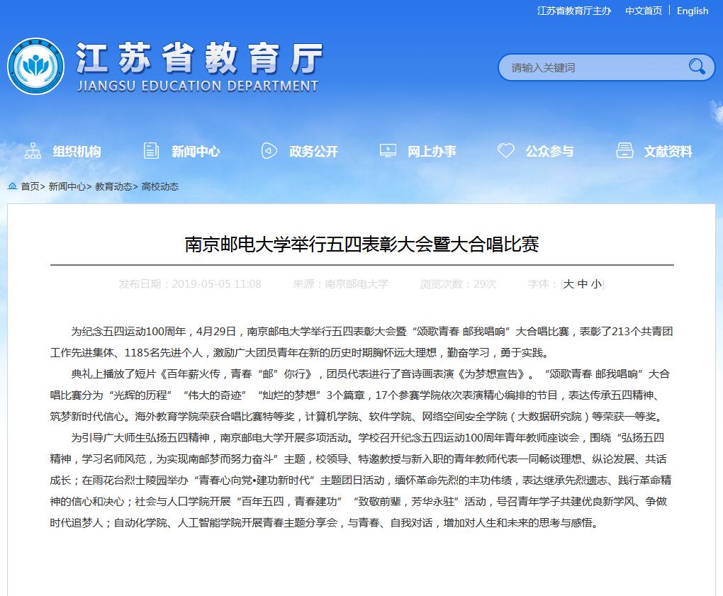 【江蘇教育】南京郵電大學舉行五四表彰大會暨大合唱比賽