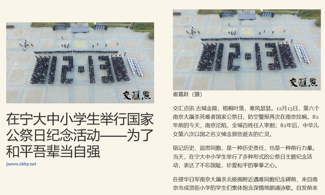 【交匯點(diǎn)】在寧大中小學(xué)生舉行國家公祭日紀(jì)念活動——為了和平吾輩當(dāng)自強(qiáng)