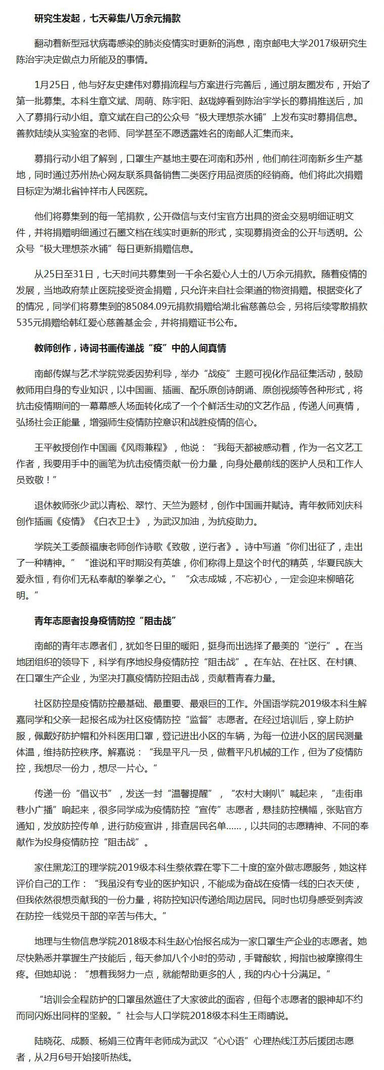 【中國江蘇網】研究生募集八萬元、教師創作詩詞書畫 南郵師生防“疫”戰“疫”在行動