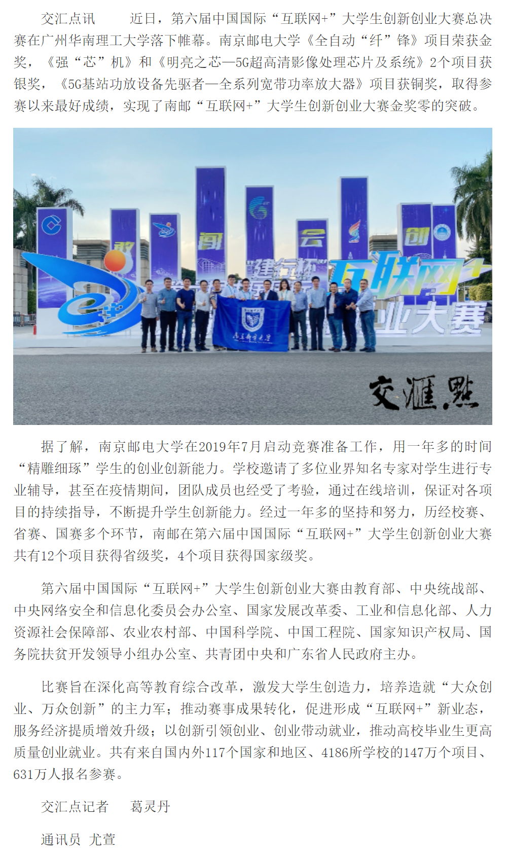 【新華日報客戶端】一年磨一賽!南郵獲創新創業國際金獎