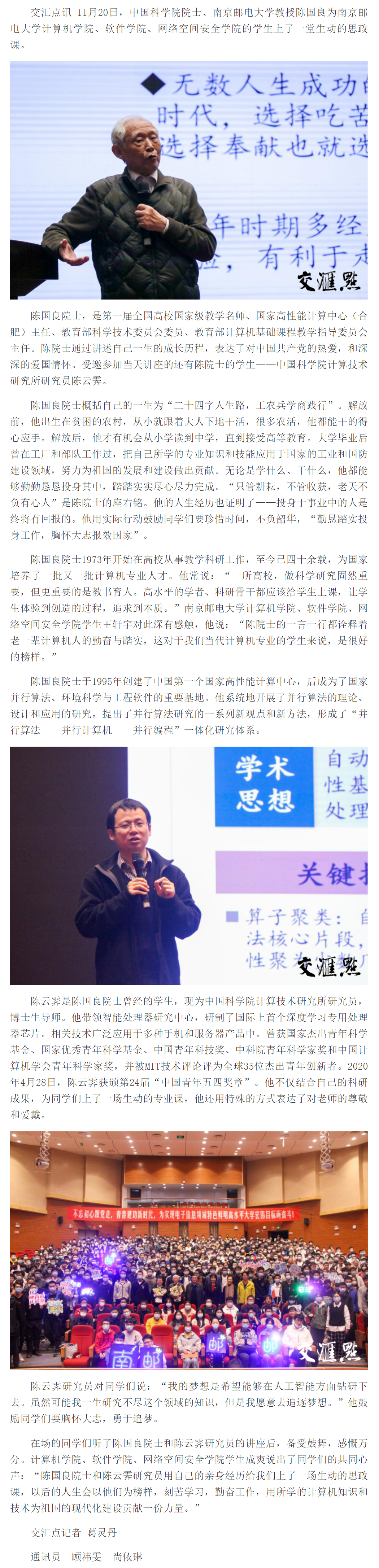 【新華日報客戶端】勤學報國!院士為南郵師生上了一堂思政課