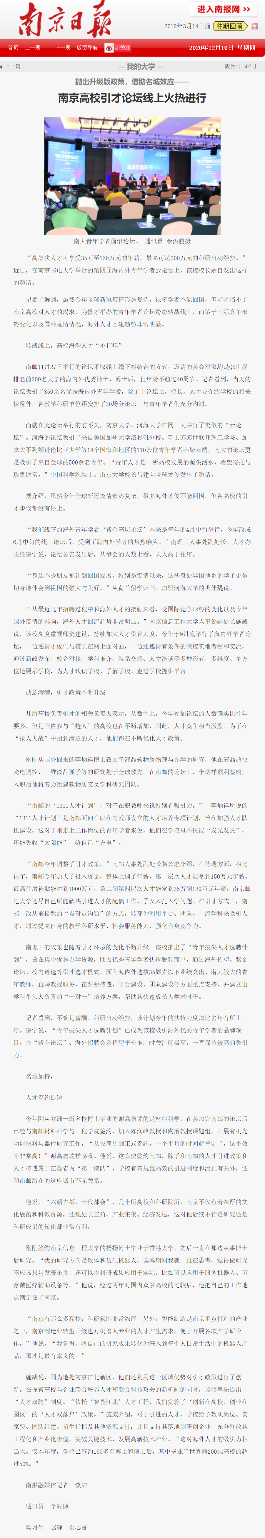 發布時間:2020-12-10 瀏覽次數:2884 文章來源:2020年12月10日《南京日報》A07版