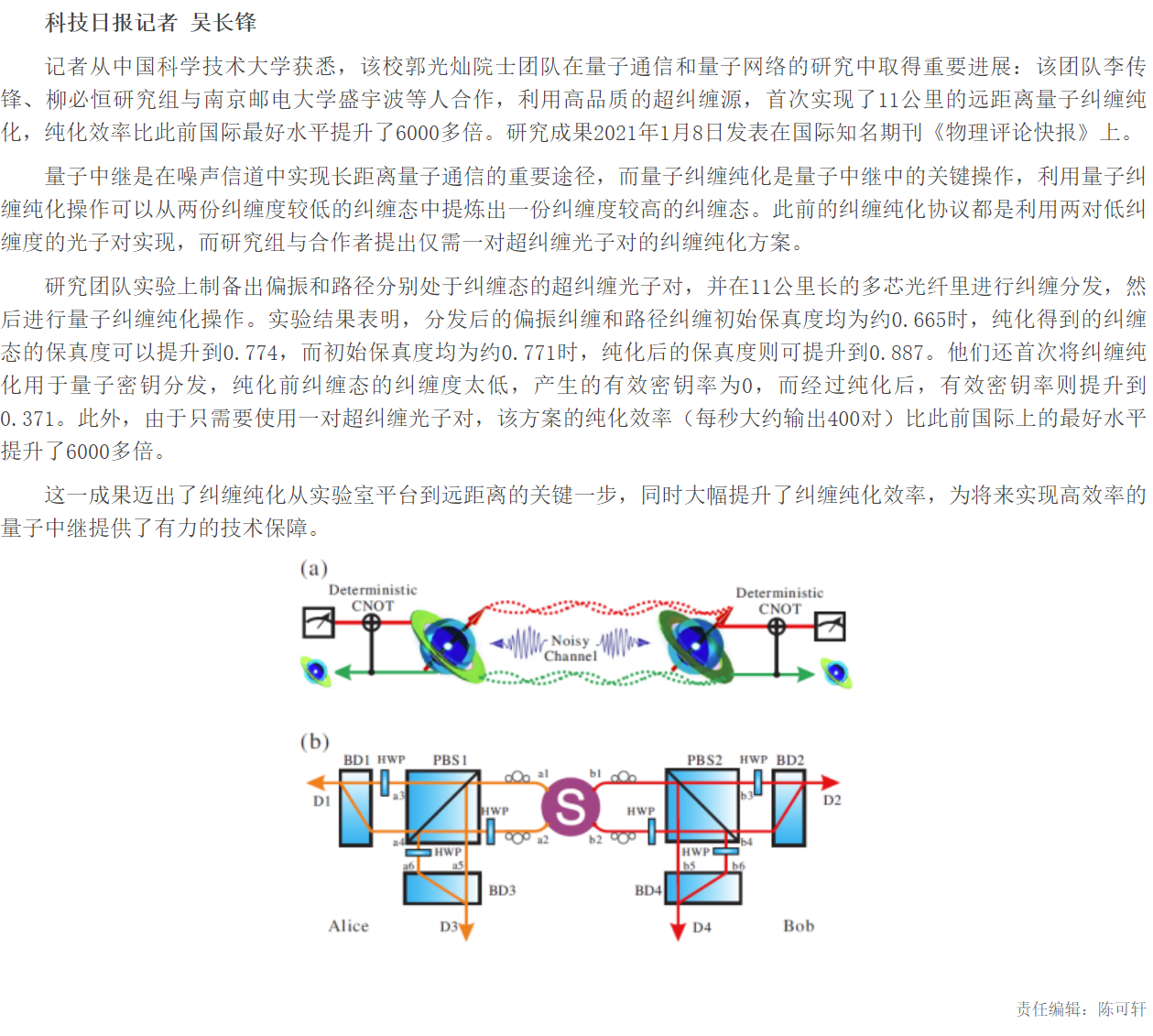 【科技日報網】我國科學家首次實現遠距離量子糾纏純化