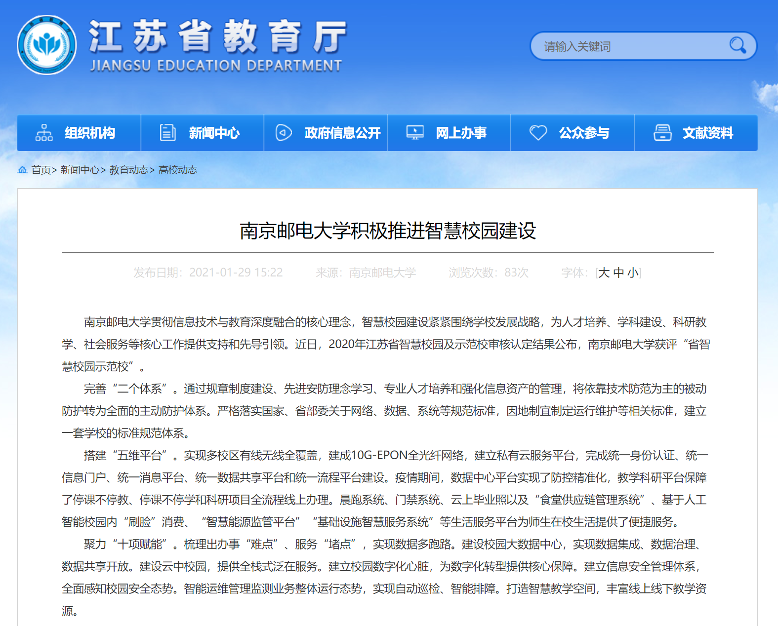 【省教育廳官網】南京郵電大學積極推進智慧校園建設