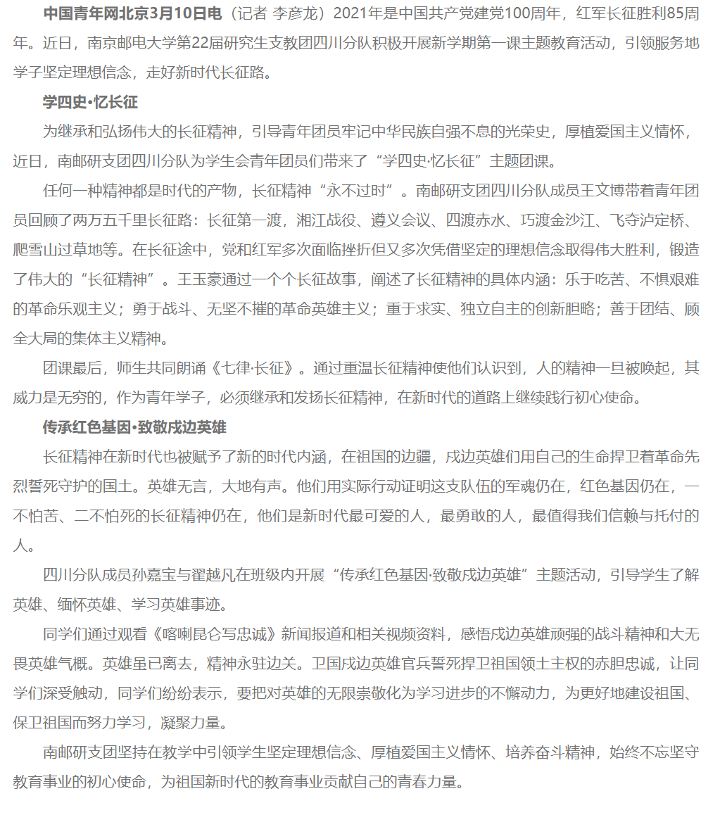 【中國青年網】南郵研支團在四川開學第一課學四史憶長征