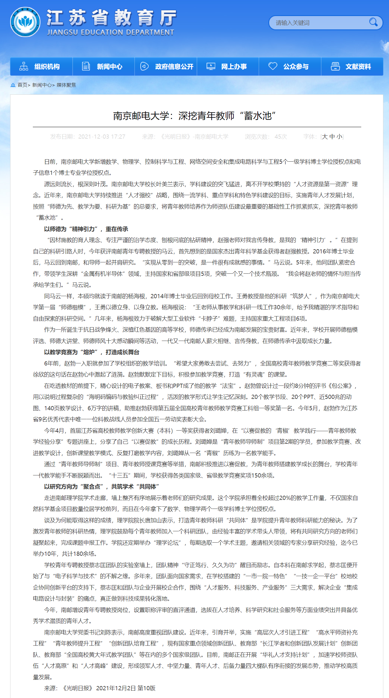 【省教育廳官網】南京郵電大學:深挖青年教師“蓄水池”
