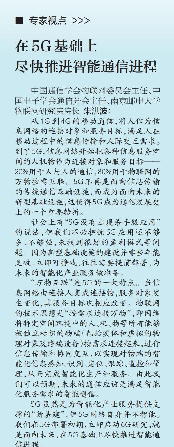 【新華日報】在5G基礎上 盡快推進智能通信進程