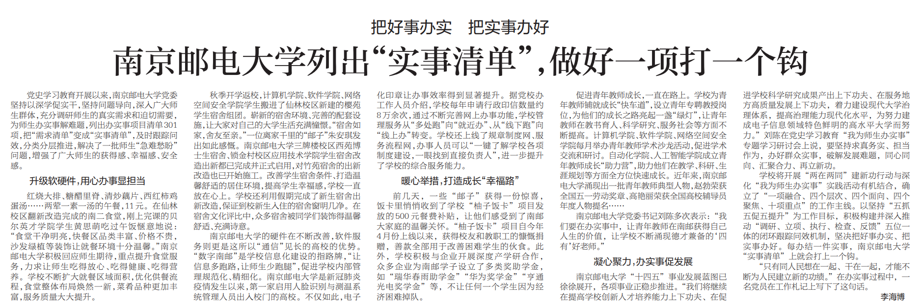 【新華日報】 南京郵電大學列出“實事清單” ,做好一項打一個鉤