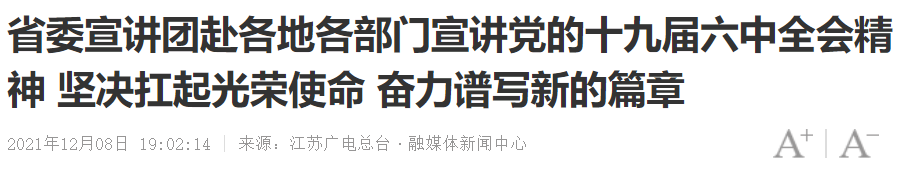 【江蘇衛視?江蘇新時空】省委宣講團赴各地各部門宣講黨的十九屆六中全會精神 堅決扛起光榮使命 奮力譜寫新的篇章