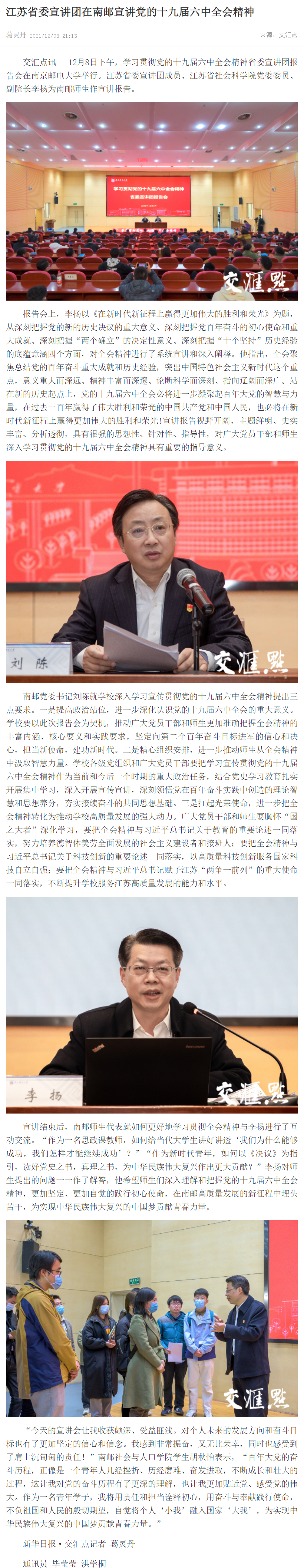 【新華日報客戶端】江蘇省委宣講團在南郵宣講黨的十九屆六中全會精神