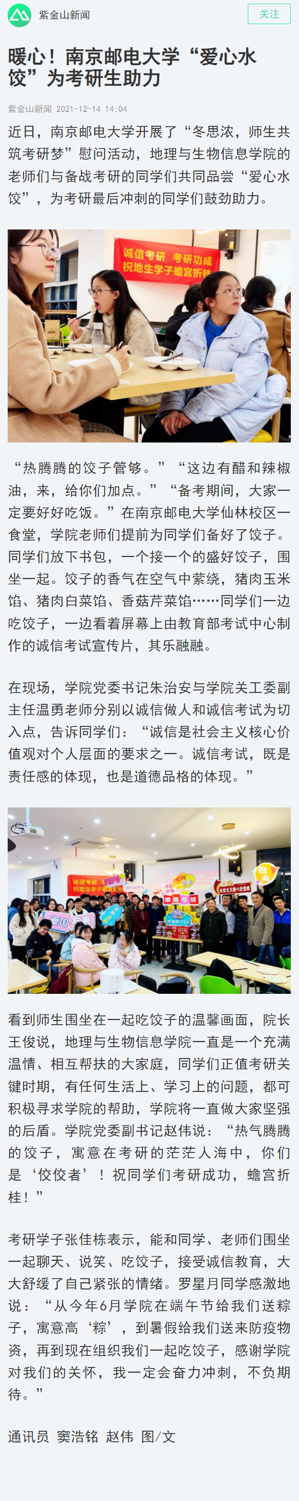 【南京日報客戶端】暖心!南京郵電大學“愛心水餃”為考研生助力